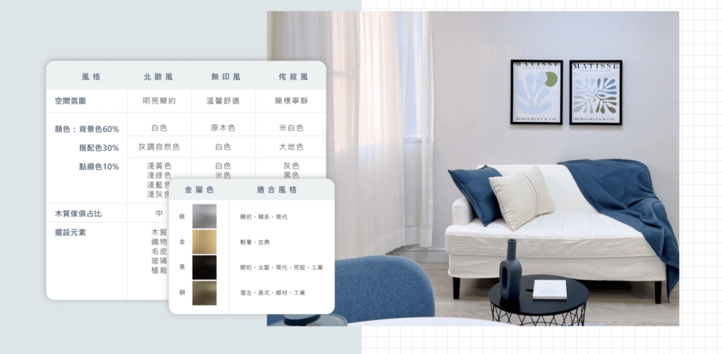 Nina 老師從電商設計起步,透過電商高效率、高產出的訓練,也讓她在軟裝作業時帶入同樣高效系統。